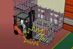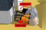 광주광역시 소재 모 공장에서 프레스동 입·출구 자동문 앞으로 보행하던 재해자가 빈 파렛트를 포크에 끼워 이동하던 3톤 지게차와 부딪힘