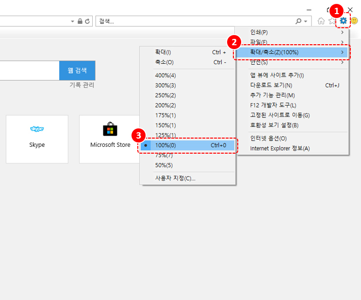 인터넷 브라우저의 게시크기를 100%로 설정하는 방법에 대해 안내 드리겠습니다.