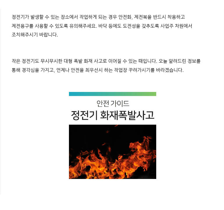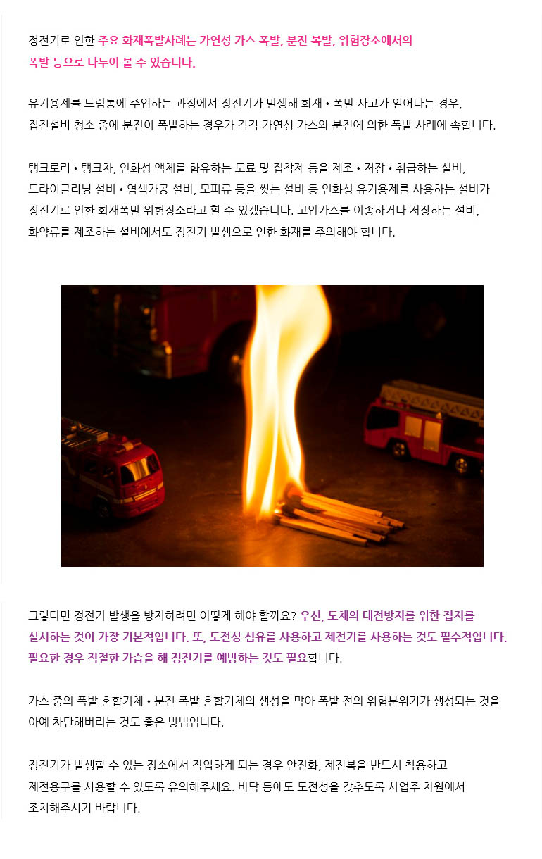 건조한 날씨, 정전기 화재폭발사고 유의하세요!