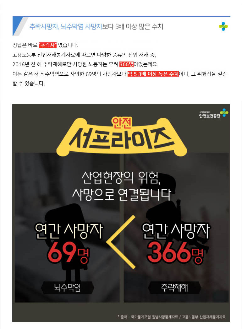 [출처] [안전 서프라이즈] 뇌수막염보다 사망자가 5배 이상 많은 ‘이’ 사고?!|작성자 안젤이
