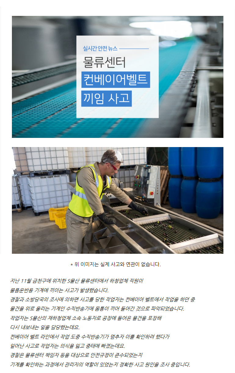 [출처] [안젤 뉴스룸] 물류센터 컨베이어벨트 끼임사고, 대책은?|작성자 안젤이