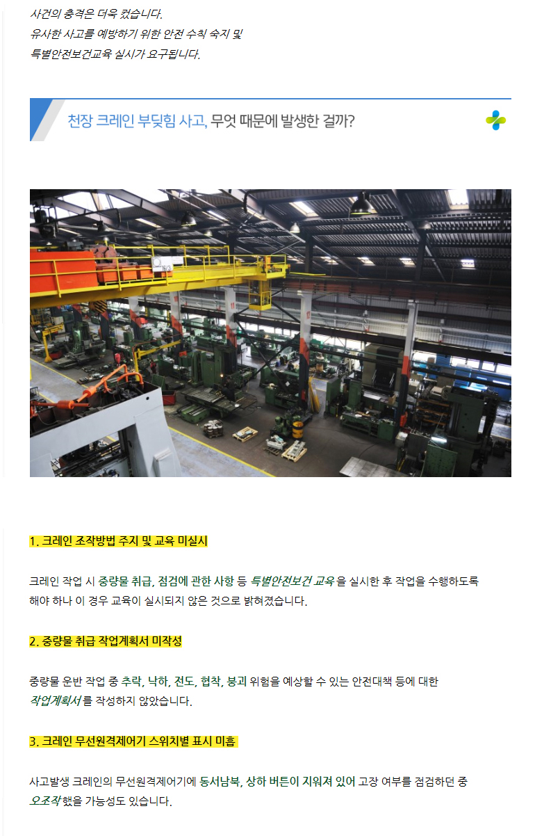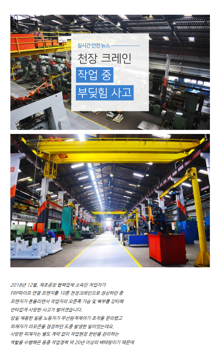 [출처] [안젤뉴스룸] 천장 크레인 작업 중 부딪힘 사고, 예방하려면?|작성자 안젤이