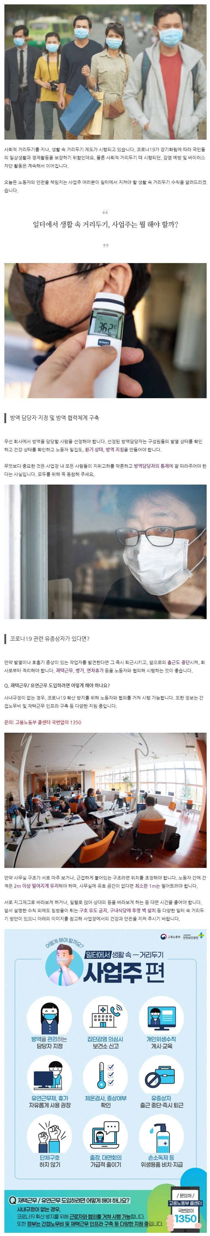 코로나19 예방을 위한 일터에서 생활 속 거리두기